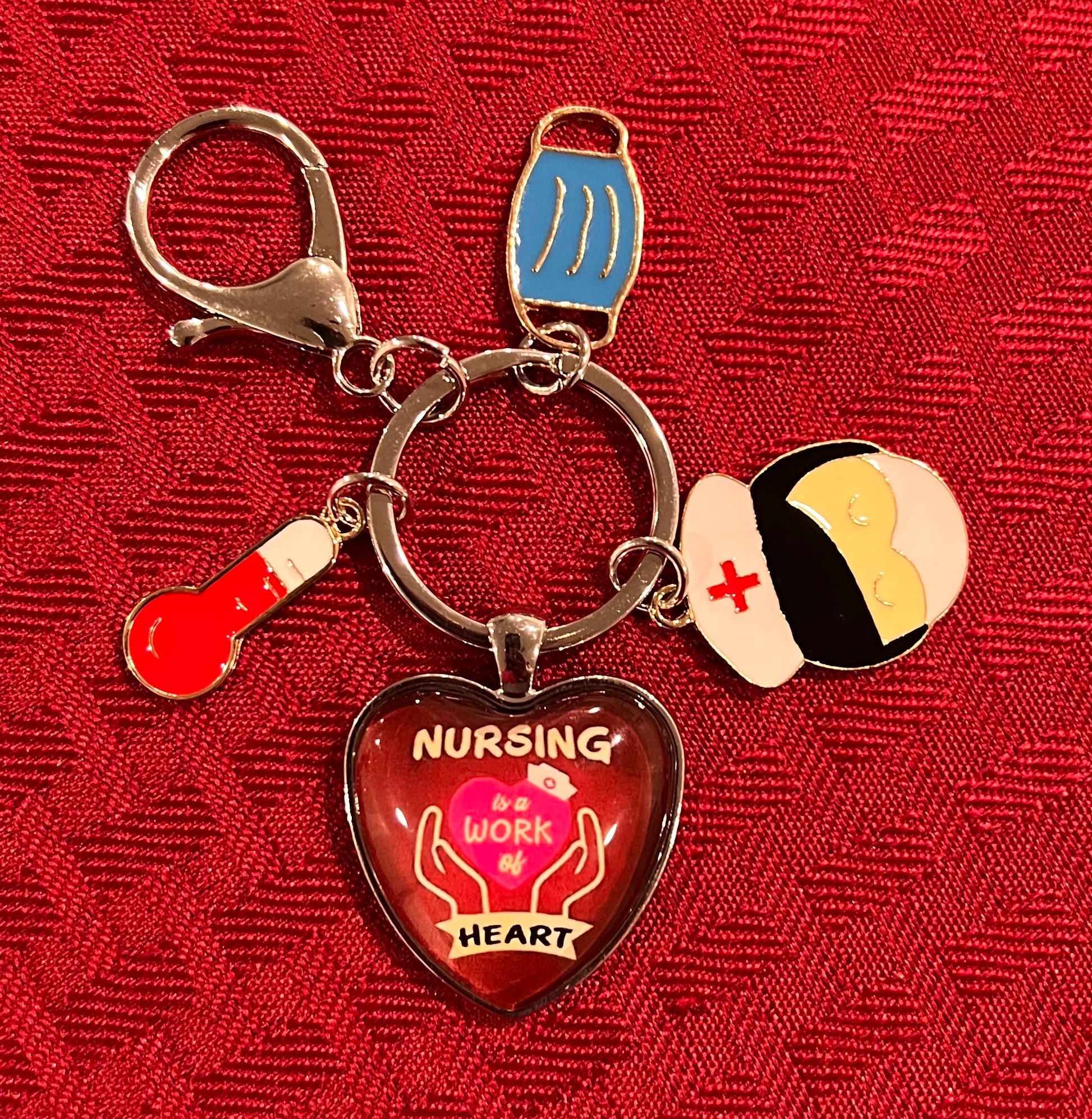 This nurse & heart keychain also comes with a mask and therometer on it as pictured. This key chain can be attached to your car keys or other things, however you decide to use it. This would be a great gift for yourself or a nurse that you know is graduating nursing school!