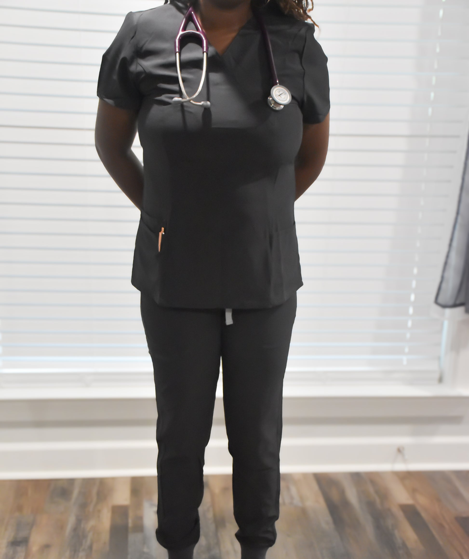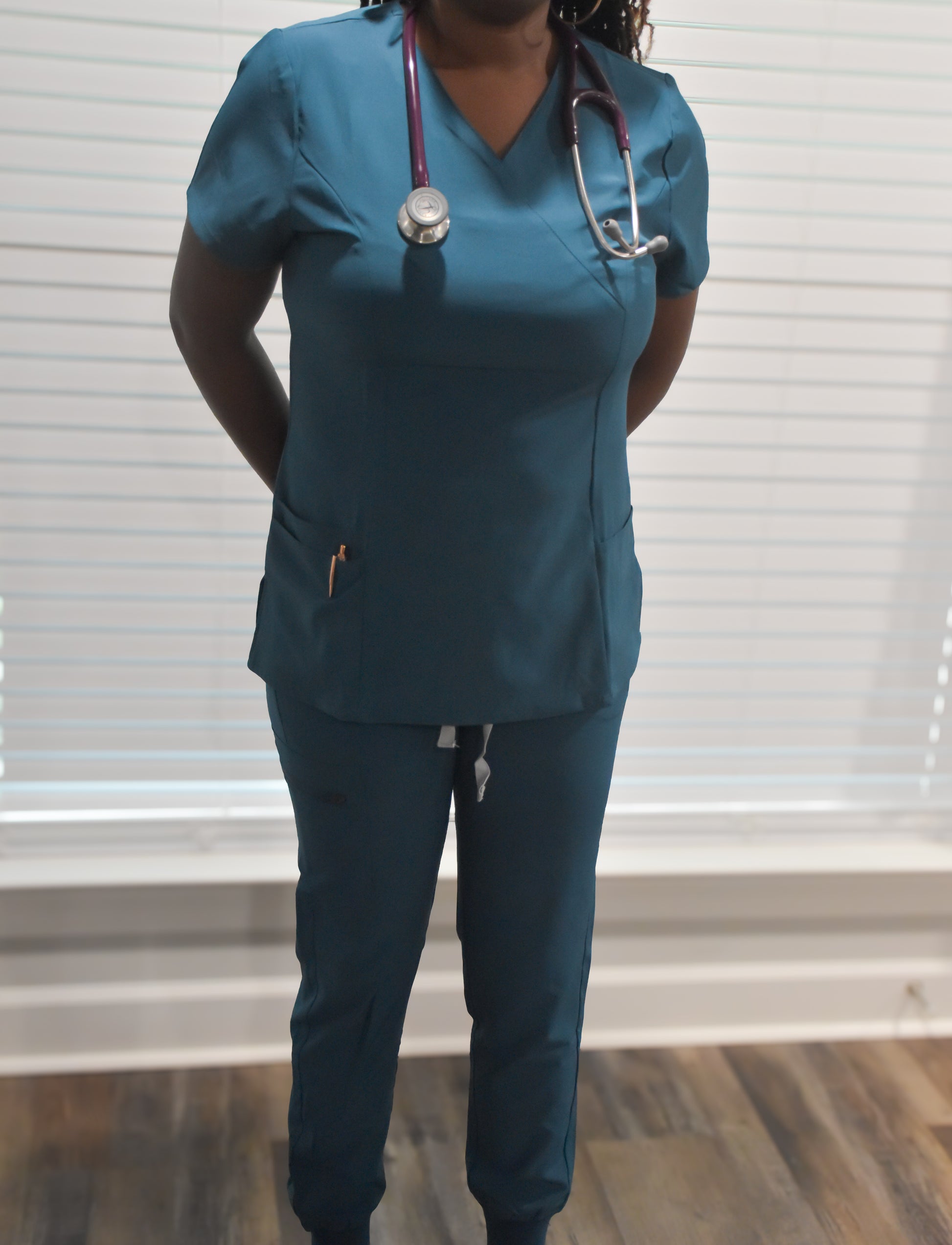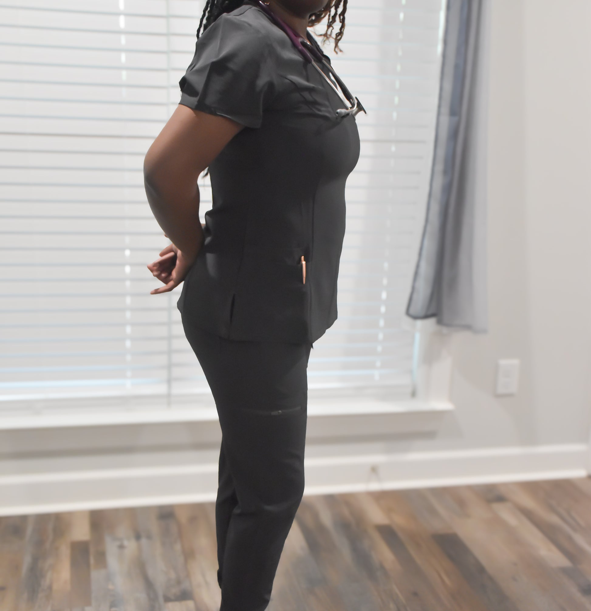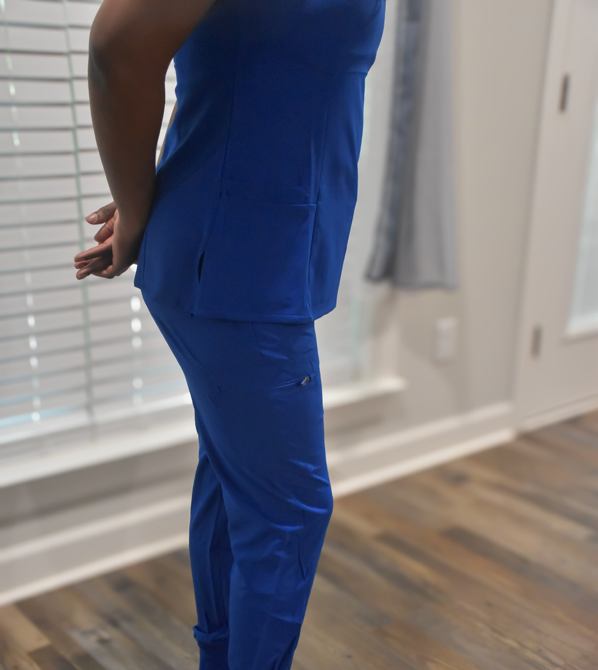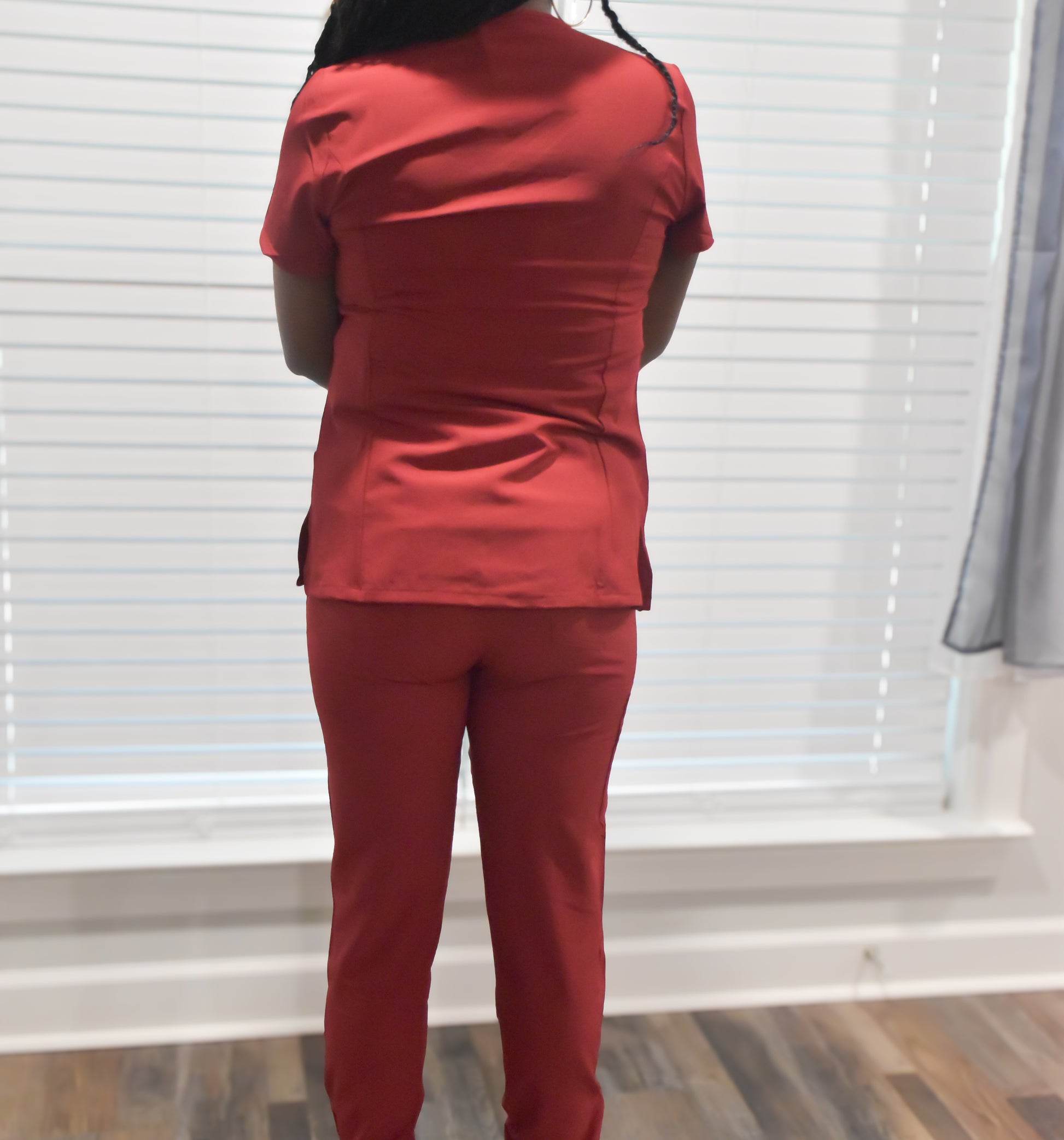 In search of women's scrub set with a sporty look and incredible softness? Then look no further, we have the perfect scrub joggers for you! The women's 5-pocket medical uniform jogger scrub set is made with spandex/polyester material. This product is also anti-wrinkle, anti-fray, easy-wash, quick dry, adjustable drawstring, and breathable. Runs small. Recommend 1-2 sizes up.